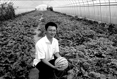 2009年,广积屯村开始进一步扩大设施蔬菜大棚的规模。徐磊祥同志积极帮助村里设计设施蔬菜大棚的建设方案。由于温室大棚的经济效益高,他向村领导提出在修建春秋蔬菜大棚的基础上建设一批温室大棚的方案,并得了村领导的肯定,目前温室大棚建设项目正在紧张有序的进行中,今年8月份即将完工。同时为了带动广积屯村民发展设施农业的积极性,徐磊祥同志自己出资2万元建设了三个蔬菜大棚。有了蔬菜大棚种什么的问题又摆在村民面前,种植普通的蔬菜价格肯定上不去,经济效益不是很高。为了能使村民能够尽可能的提高经济收益,他开始把目光投向农业新品种的种植上。经过多方咨询,2009年5月份徐磊祥同志决定试种荷兰研制的一种无籽西瓜新品种。这种西瓜一棵能结四到六个西瓜,如果在3月份定植,一年能出3茬西瓜。而且这种西瓜耐储藏,保鲜期比较长。按一个棚一年出2万斤,每斤1.5元,每棚一年能收入3万元,比种植普通的蔬菜收益能高出一倍,经济效益十分可观。现在西瓜长势良好,徐磊祥同志打算在今年种植成功的基础上向村民推广此品种,努力带动村民增加经济收益。